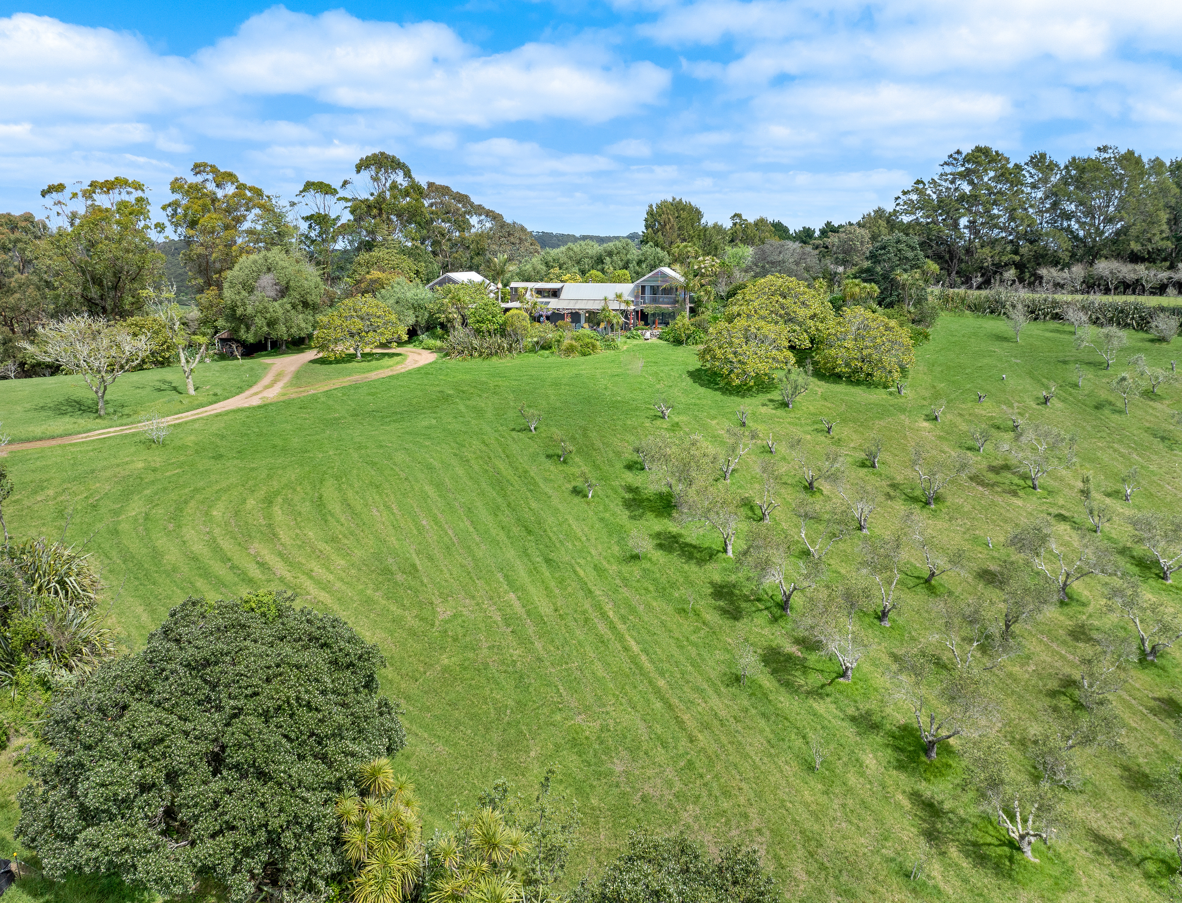 Beyond the home, the land speaks: Koroneiki, Ascolano, Picual, Frantoio and Leccino olives yield 1-1.6 tonnes annually. For years, the oil was bottled under the Te Kahu label achieving Gold at the NZ Olive Awards. Today, production is professionally managed, from pruning and picking to pressing and bottling.