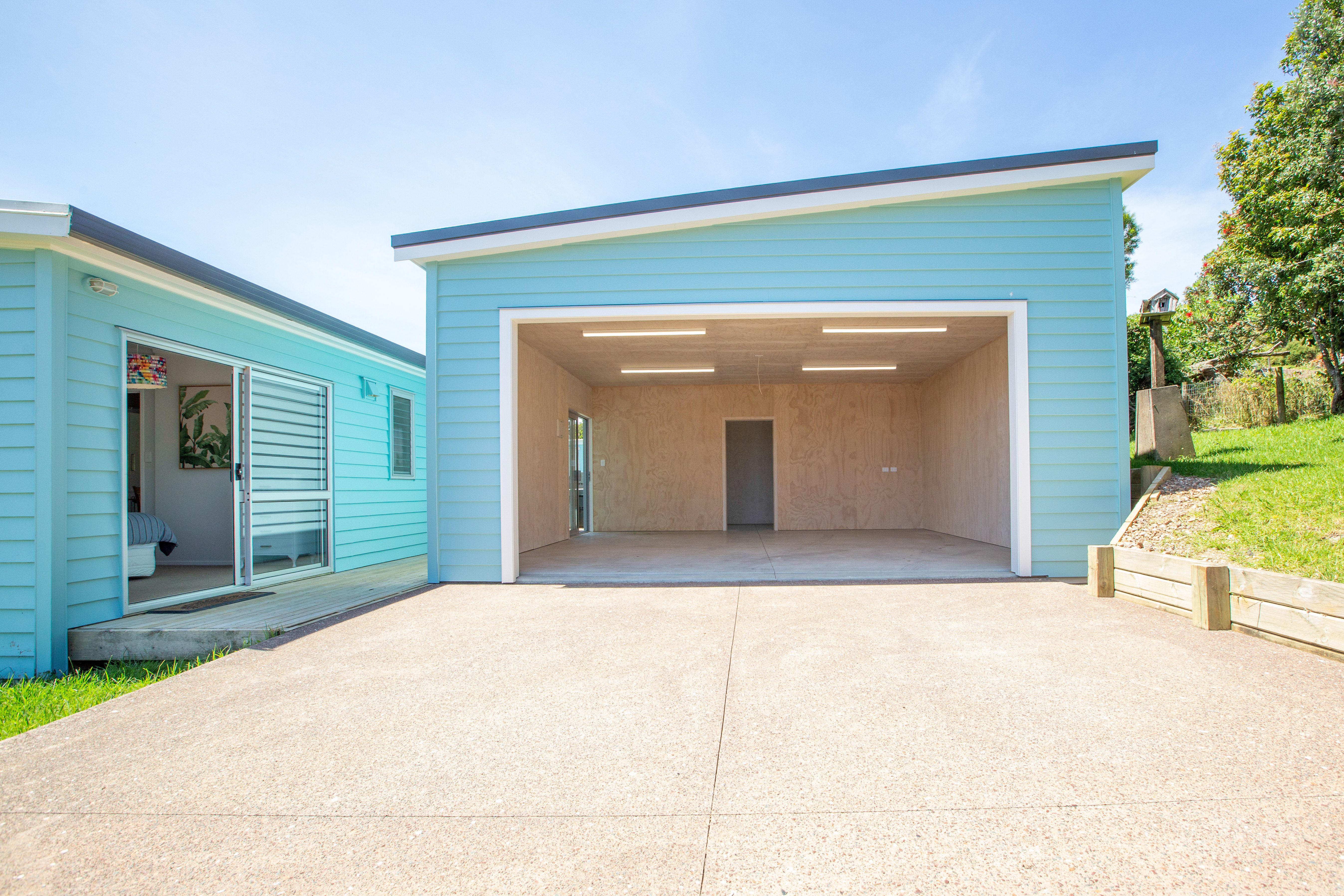 A real standout is the new high-stud, lined garage-EV-wired, insulated and double-glazed - including a rear separate studio for even more versatility. Conveniently there is a covered walkway from the garage to the house.