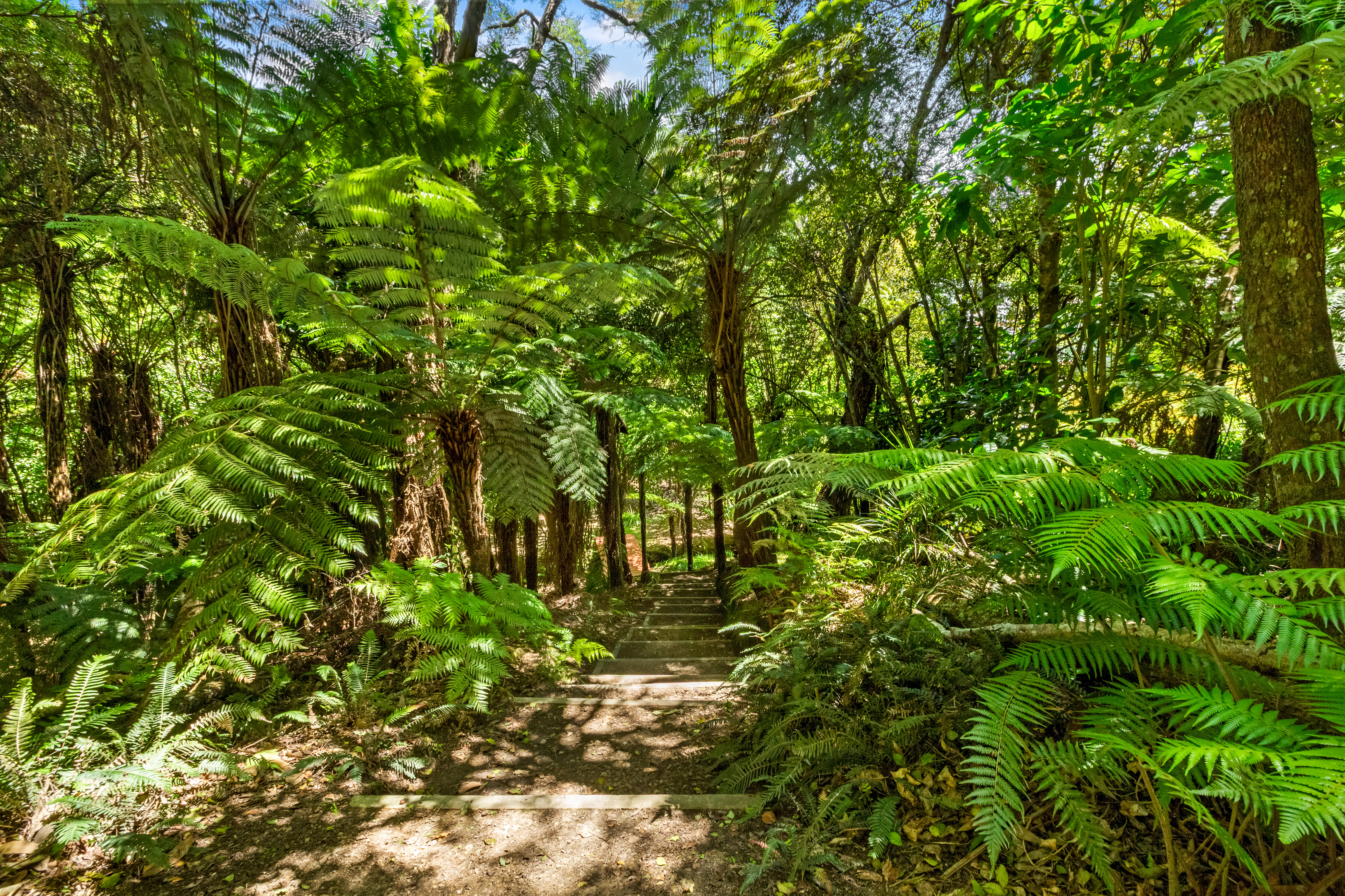 Nearly flat at the dwelling and generous in scale, the property delivers privacy, established access via footbridge, underground power, mains pressure water and a 35,000L water tank. A raised vegetable garden adds everyday connection to the land, while the bush-clad setting enhances seclusion.